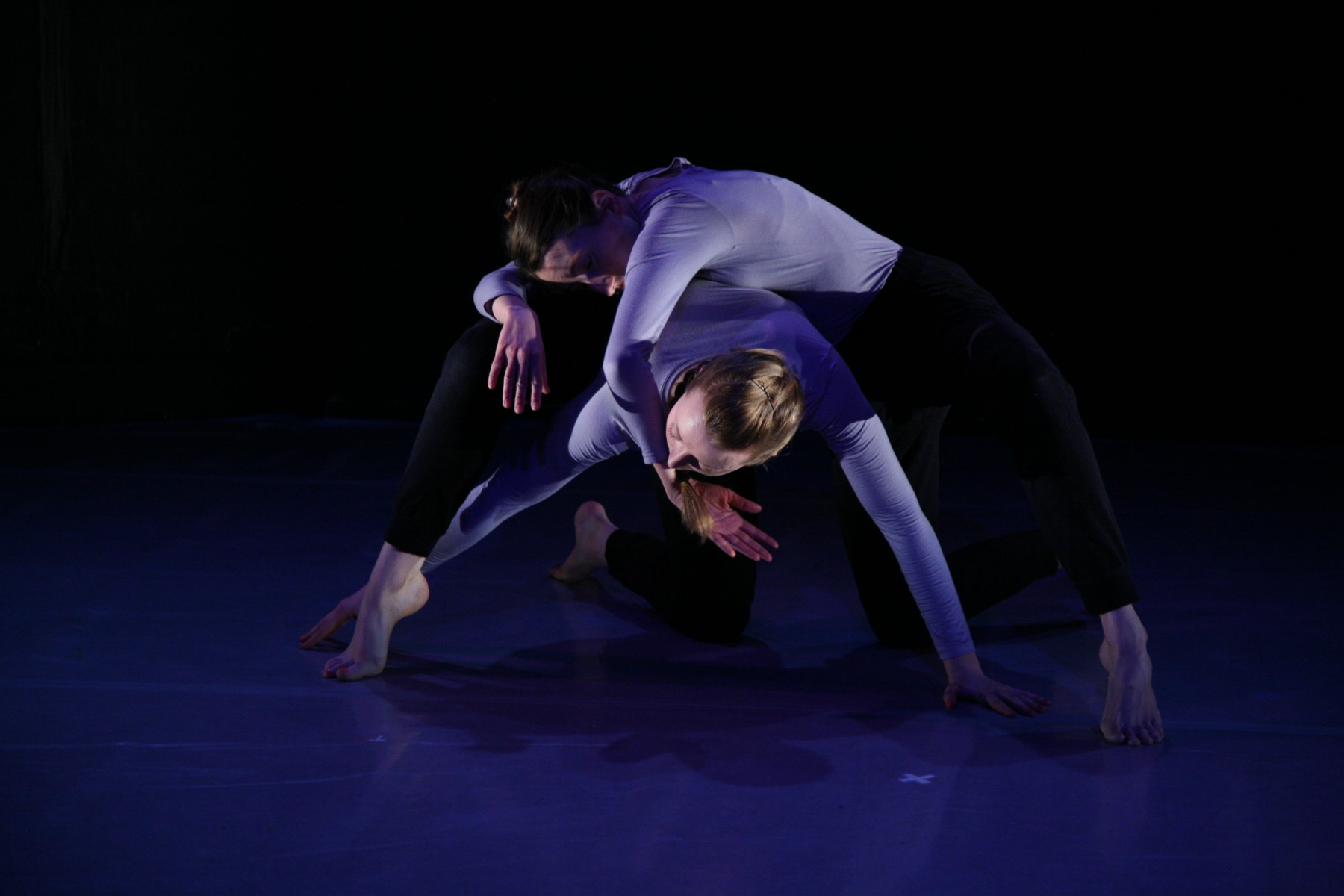Don’t Lean On Me Man, created without musical accompaniment, by recent Columbia graduate, (and full disclosure, Dance Enthusiast correspondent) Garnet Henderson, is the picture of ease and no-nonsense eloquence. Henderson and Rebecca Hadley move expertly. We savor the choreographic language as it shifts from conversations of falling weight, to those of spritely steps, to those of directional zig zags,and so on — feels refreshing.