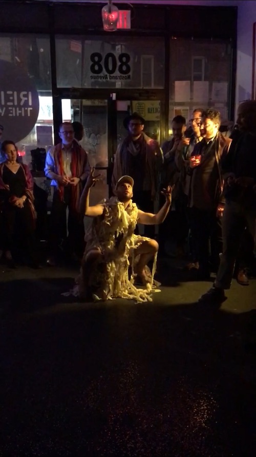 Nestled in Crowns Heights between a hip wine store and a West Indian restaurant sits Repair the World NYC. Inside, on a Friday night, the lights are dimmed, but the lobby is abuzz with people sipping wine and munching on crisp hors d'oeuvres of apples, mint, and strawberries. No, this isn’t some new DIY event space hosting an art opening or album drop. Rather, it’s a Jewish service organization co-presenting the New York premiere of The Shabbos Queen. Part ritual, part performance, and part dinner, the event is the brainchild — or shall I say lovechild — of artist Stuart Meyers.