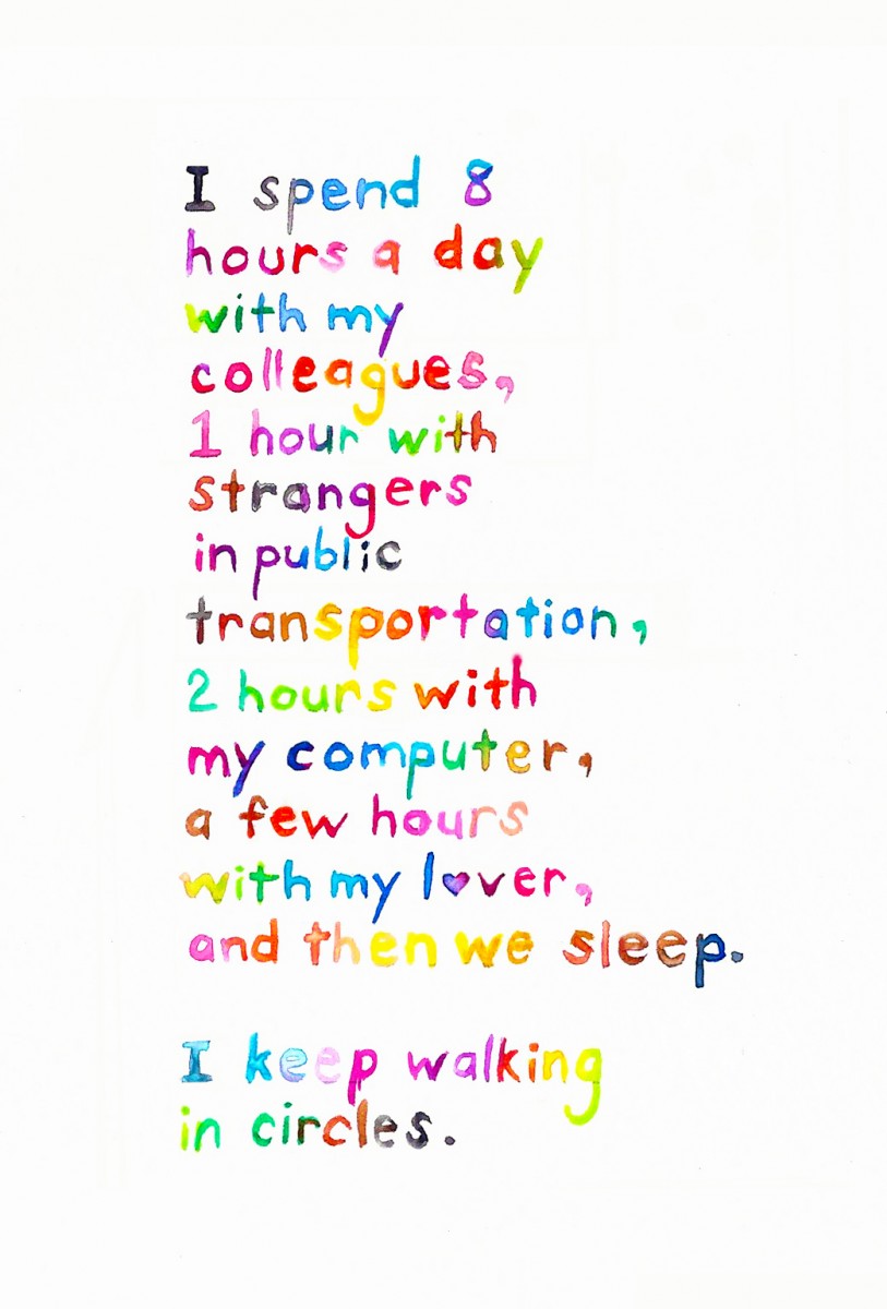 A poem is projected onscreen; its words burn into my mind, forcing me to recognize the pointlessness of daily rituals, and spurring me on to seek out new movement.