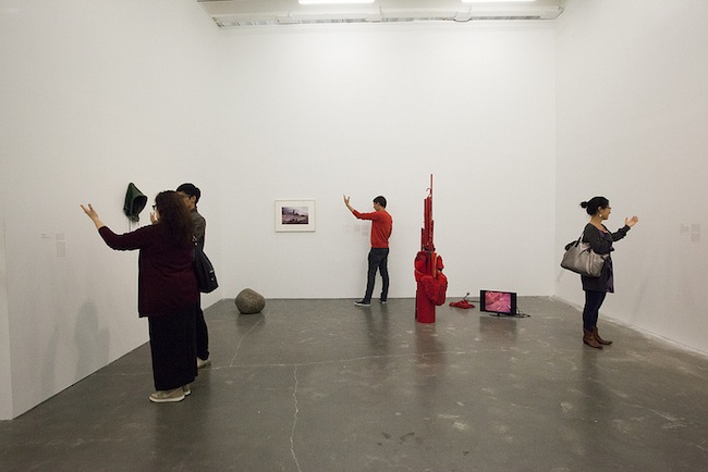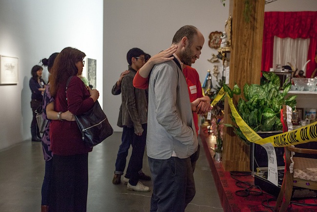 | "Aural Sensations," participants walk through Pepon Osorio's "The Scene of the Crime (Whose Crime?)." Photo by Caitlin Ruttle. |
