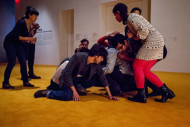 This anxiety was, at least momentarily, assuaged on Friday, May 24, when I found myself in the lobby of the New Museum amidst the final days of the much-talked about exhibition, NYC 1993: Experimental, Jet Set, Trash, and No Star. Luckily, I had dance artist, Michelle Boul, and theatre director, Niegel Smith, to guide me through it all. Their organized walk was presented by Elastic City; a Brooklyn-based organization that commissions artists to lead sensory walks through public spaces. Titled “Admission,” Boul and Smith directed us through seven different spaces of the museum and allowed our group of nine to engage, confront, and explore art in a way we would not otherwise be able to.