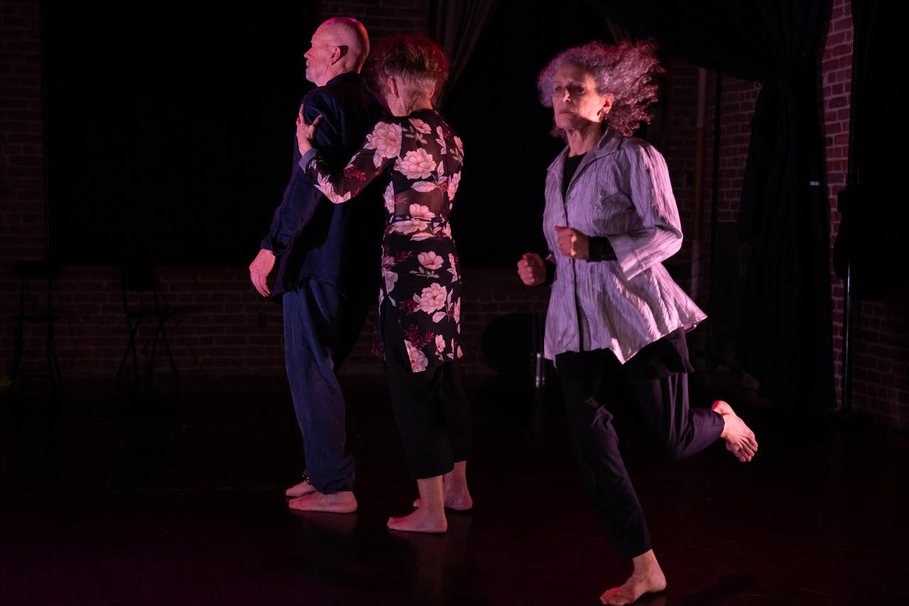 Risa Jaroslow (running in foreground ) with Rinde Eckert supported by Vicky Schick (background). Photo: Julieta Cervantes