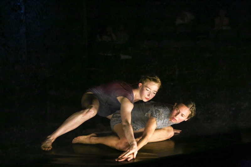 The choreography shimmers with a strange, stirring beauty. Reminiscent of busted-up, broken-down baby dolls, limbs creak at awkward angles, necks jut, and torsos crumple. Scofield and Freedman connect these angularities through creamy, elastic transitions and pops of ballet academicism. While often in unison, their harmony is ragged, suggesting twinned seeds that have developed personalized responses to identical stimuli. Two exquisitely calibrated solos accent this: An inwardly absorbed Scofield wrings herself into peaks and troughs whereas a paranoid Freedman, fraught by external provocations, darts glances over her shoulder and flares into heaving attitudes.