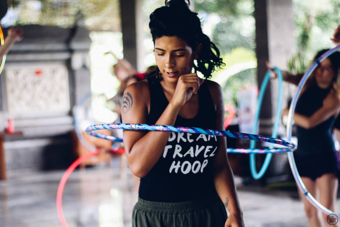 Months later, it’s somewhat surreal to find myself surrounded by the very community I longed to connect with. Young women such as myself had flown to Bali from twelve different countries to unleash the potential behind a circular piece of plastic. While striking up chats with the other girls, I was intrigued and moved by their reasons for being at the retreat. For instance, Hajung, a fitness instructor from Seoul, Korea aimed to merge hooping with her tribal belly dancing classes, while Su from South Africa aspired to teach better hoop classes to kids back home.