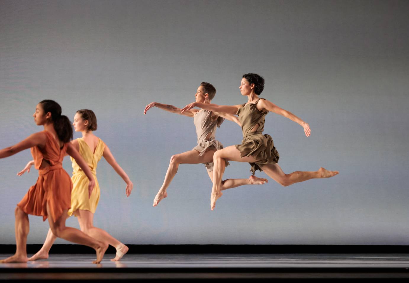 Elisa Clark (center figure in light brown) Dancing in Mark Morris' Socrates; Photo: Chris Hardy