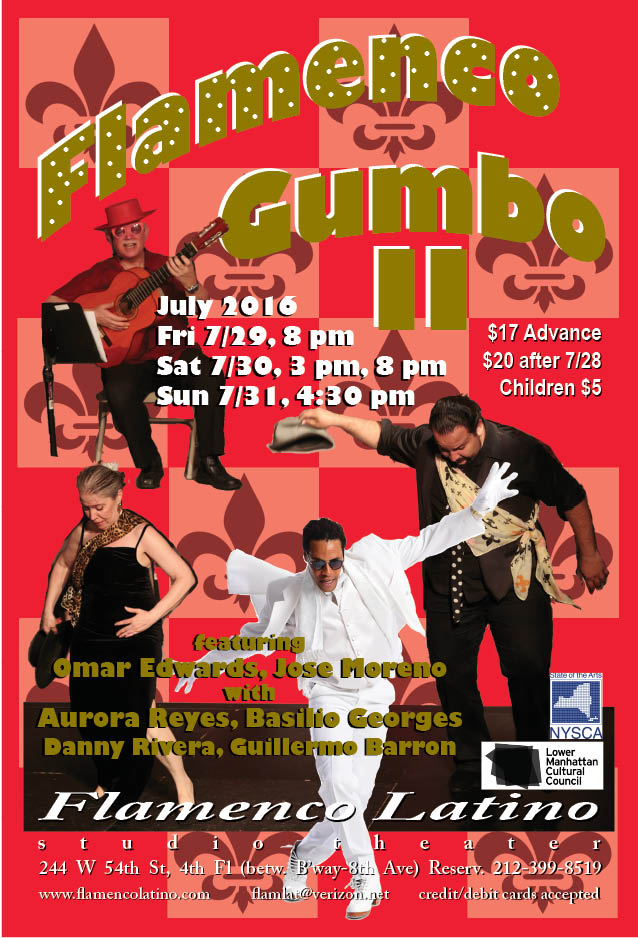 Flamenco Latino’s Más Allá Series, Summer 2016 features 4 performances of Flamenco Gumbo II! at Flamenco Latino Studio Theatre