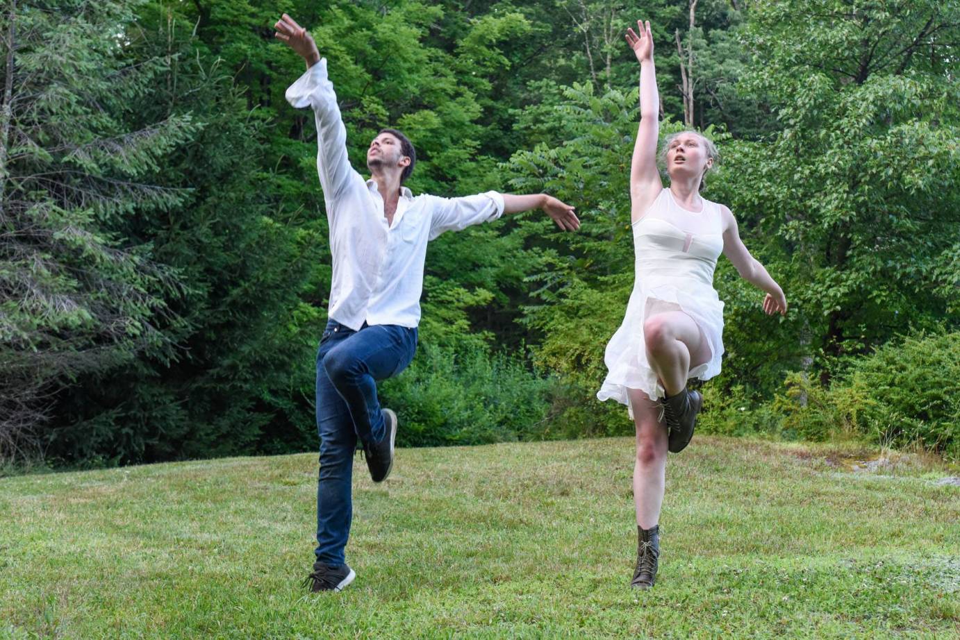Company dancers, Jose' Miguel Rebolme and Lovisa LjungQvist-Brinson, emerged out from the forest, in the soft light from the sun setting behind the trees.