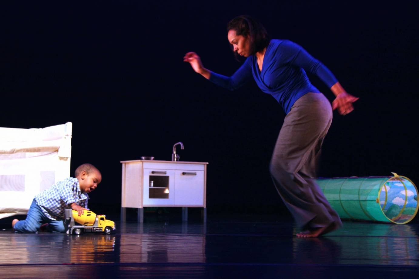 I have also enjoyed the work when it explored being a working mom and getting the kids out of the house. Or how a child learns about spirituality. I hope to continue to develop the work until Kasim decides he no longer is interested. It is my goal to perform with him every year or every other year. Each time we perform, we change out text and the his props to reflect his growth. There was a crib and diaper bag on stage during our first performance. Last time we danced, I brought his trains. For the first time, he showed no interest in the toys on stage and choose to dance for most of the time. At the end of the piece, he was so comfortable on stage that I had to scoop him up to get him off. We will see what he decides to do next time.