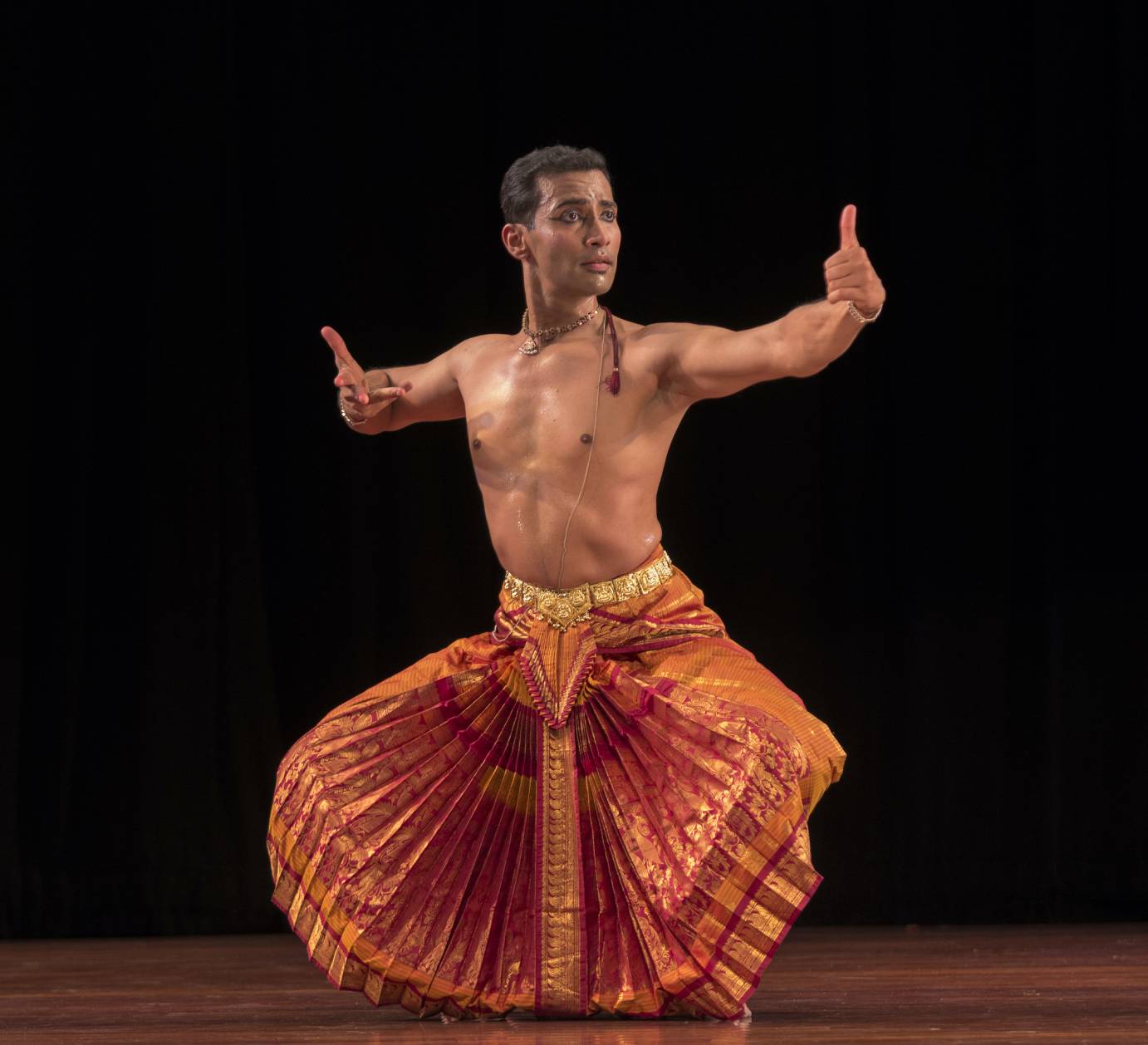 DS: We do have a wide range. The Indian cultural body Center for Cultural Resources and Training recognizes 8 classical dances and innumerable folk forms. Bharatanatyam, Kuchipudi, Sattriya are all classical forms that you will see. On the other hand, Bharatanatyam has a more formal institutional version called Kalakshetra, taught at the Kalakshetra University which you will see Neha and Damir perform. Chhau is a folk form that you will get to see from Purulia area of Eastern India. And finally Vishwakiran Nambi's contemporary form is outside of the so-called canon but is amazing enthralling.
