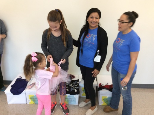 Cindy Fitzgerald, Sidney's mother: The presentation day was simply amazing - way beyond our expectations. Hope Street Family Center was held a day of free dance classes for the community and everyone was in a great mood, dancing up a storm. Sidney knew all the teachers because they are dancers with Los Angeles Ballet. In fact, her mentor in launching this program, Allynne Noelle (former Principal Dancer with Los Angeles Ballet), introduced Sidney to Hope Street when she first came up with the idea of collecting dancewear for the underserved. It was pouring that day, and we had to carry these really huge cardboard boxes labeled and separated by category so the kids could easily find what they needed - Sid’s idea. We got drenched and were a bit flustered. Sid was pretty nervous about what she would say when it was her turn to speak, but she could feel the excited energy and gratitude. It all came out beautifully. Hope Street was so receptive and grateful, it was really special to give to the kids at this amazing organization. We filmed the whole experience because she was in the midst of making a short film to submit to the White House Student Film Festival about the importance of children giving back.