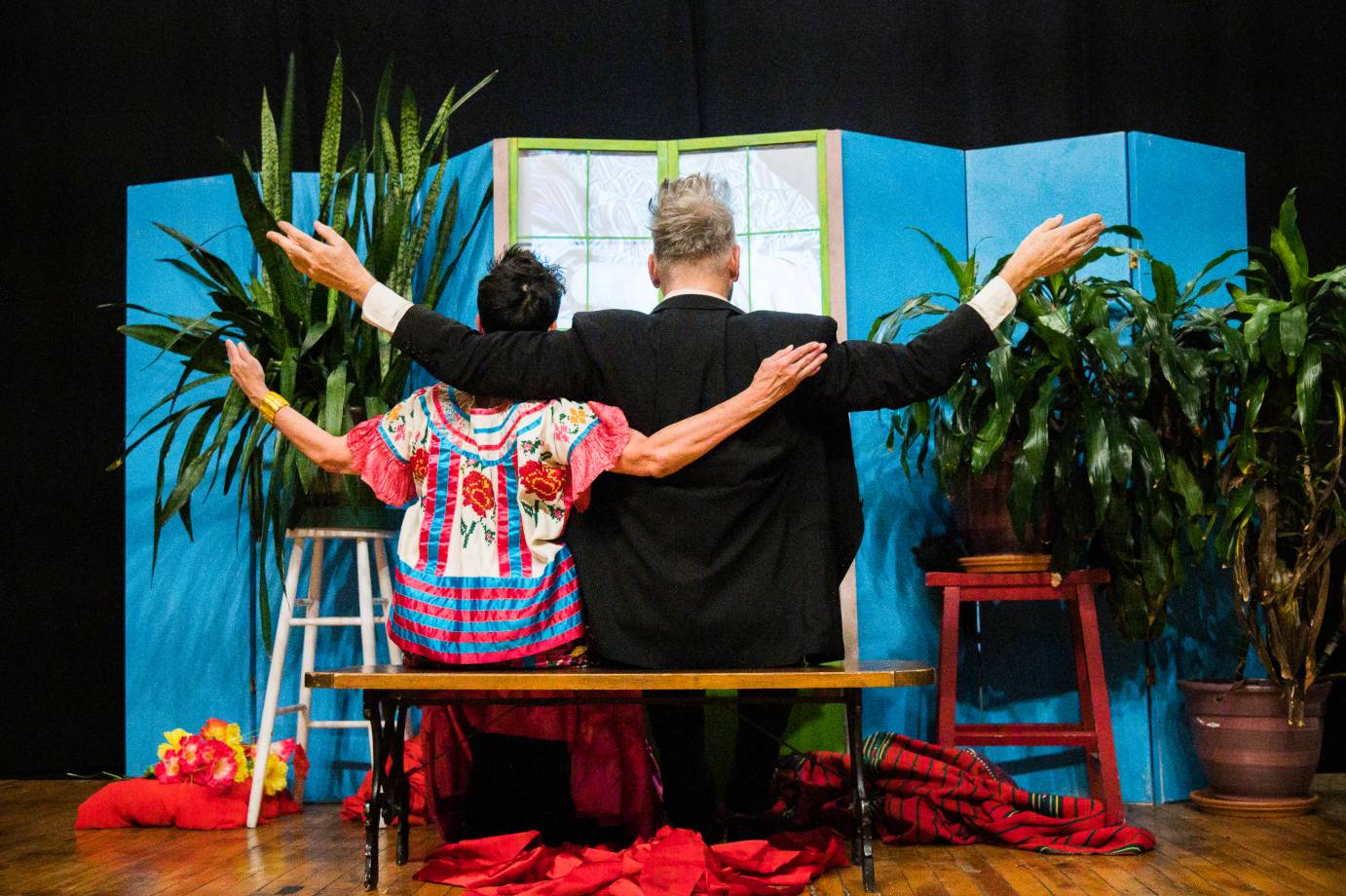 The set is simple and inexpensive to construct on site with local artists, designers and architects to further engage audiences. As a movement installation and offering, integrating the spirit of local people, materials, and artists in various places with their unique geographies, histories, and contexts into this physical set is part of the concept that we are all Frida, part of Frida, and can access those traits of Kahlo we might need to understand, cope with, and enjoy our lives and what life deals us, whether blows or kisses, ugly or beautiful, expected or out-of-the-blue. We can travel lightly with this work.
