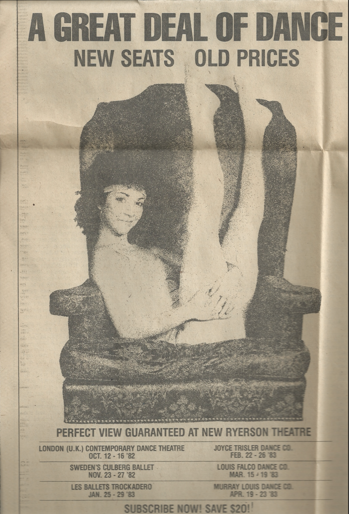 Heidi Latsky: So, this was an ad that I did for the new Ryerson Theatre in Toronto. The funny part of this story is that I don't know how I got that job. They were trying to get me to be seductive, and I couldn't do it.