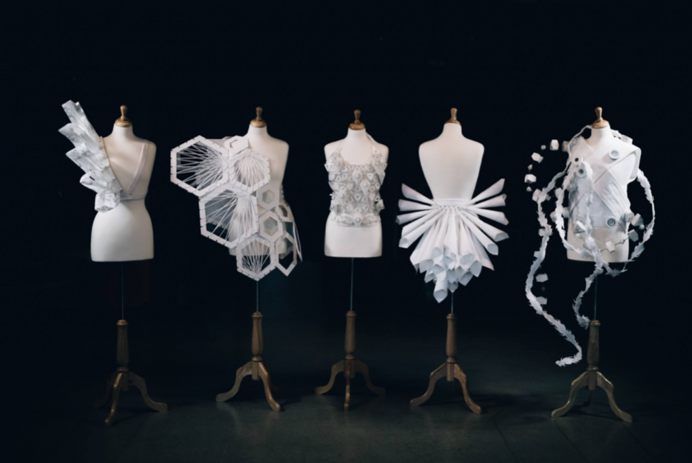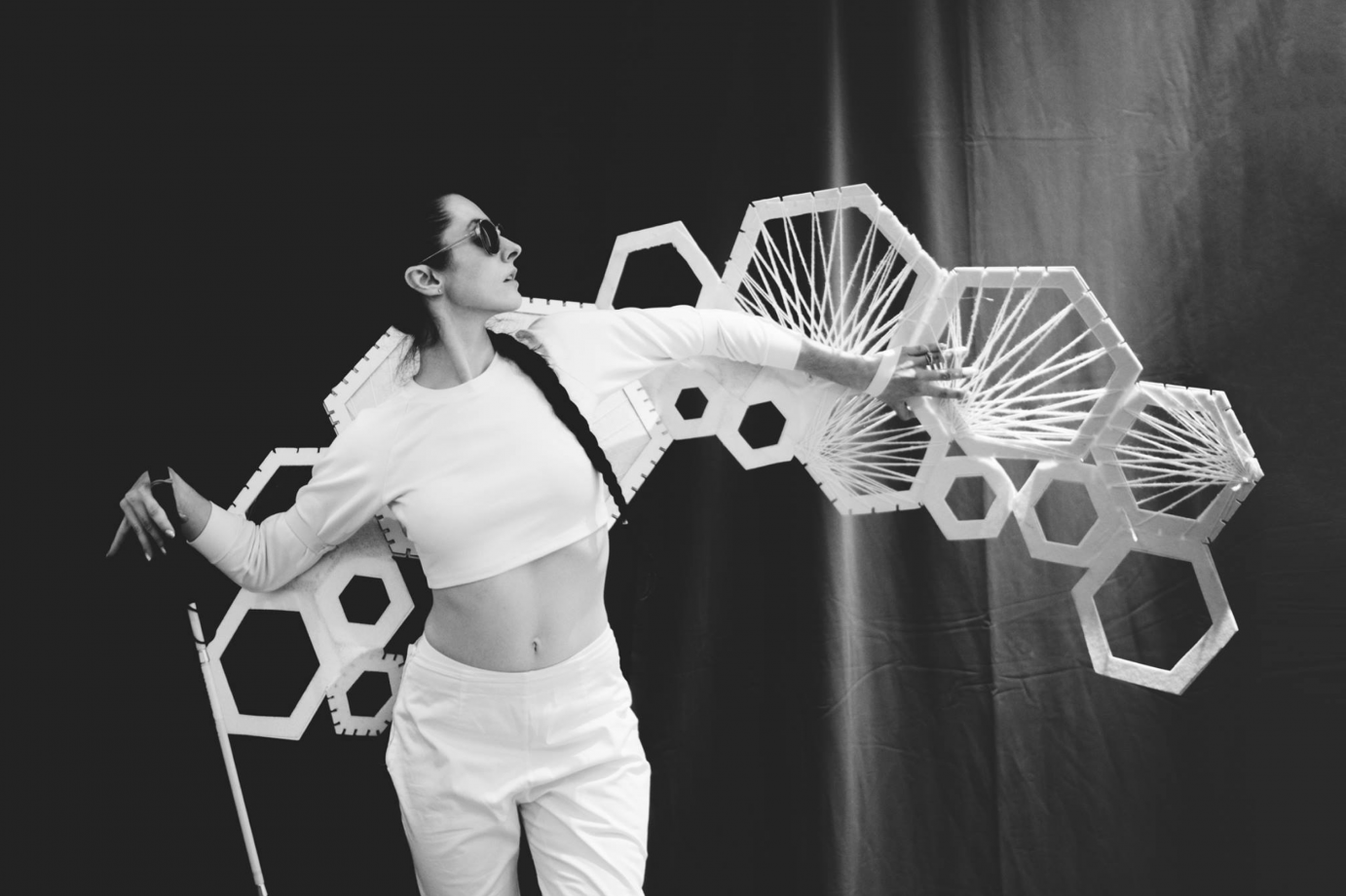 The students spoke with my dancers for about an hour to figure out pieces that might highlight the dancer's individuality or interest, then they divided up maybe two, or three students to one performer, to create a wearable piece. I think it was 2016 when they came to New York. And I saw . . . well I wasn't expecting "anything" like this.