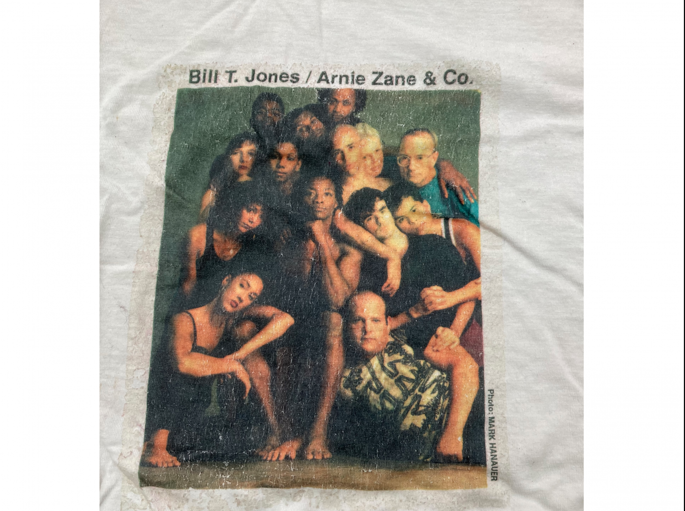 This photo is from Last Supper at Uncle Tom's Cabin, The Promised Land. A professional photographer, Mark Hanauer, took it of our company, Bill T. Jones/Arnie Zane & Co. I have no photos from that time. I mean, I have a lot of photos, but they're in a box somewhere — nothing digital— so I took a photo of this shirt. I love this photograph.