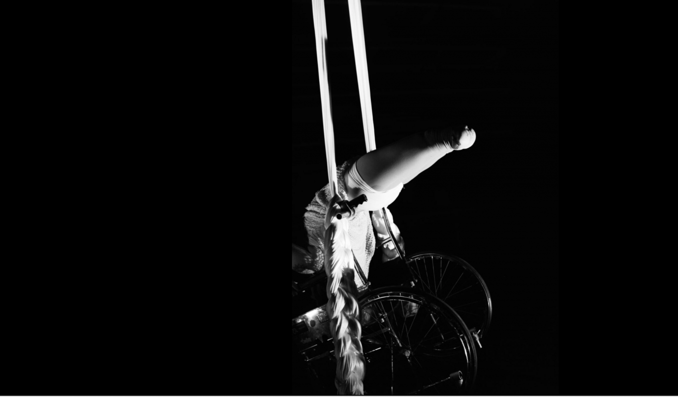 This is Erin Ball, a fellow Canadian, with her wheelchair suspended by silks,