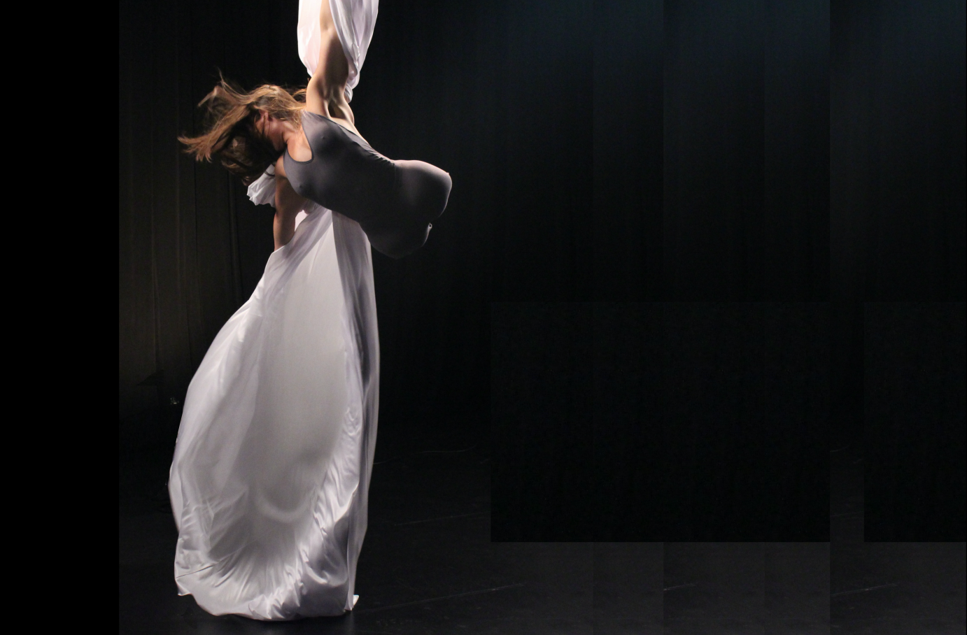 There is NO spectacle and NO presentation. I wanted her to close her eyes as if the silks and the chair were part of her and she's in a deep meditation.
