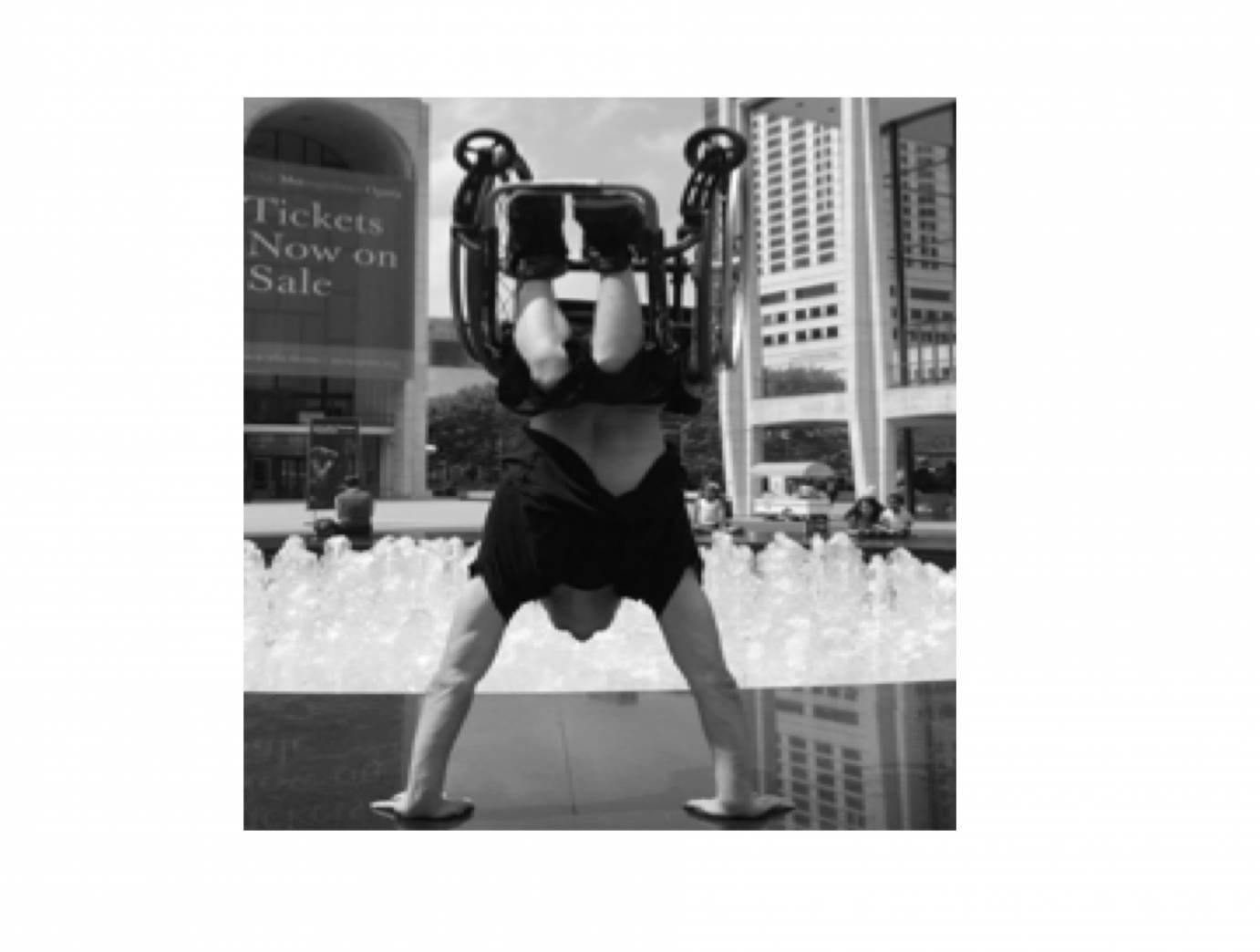 I'm trying to remember his name, sorry; I think it was Fabrice. This is Lincoln Center. He, unbelievably, and we got in trouble for this, did a handstand on the rim of the fountain. Then security came over and said, "You can't do that." But I CAPTURED IT, thankfully. This was for the 25th anniversary of the Americans with Disabilities Act. I wanted to get a group of wheelchair athletes together and create something daring and athletic. We performed at Lincoln Center on the plaza. It was hard because I couldn't find many wheelchair athletes in the city. We didn't rehearse very much, but they were so much fun. I don't know where Fabrice is now; he was in college at the time. But I'd work with him in a heartbeat. He was a brilliant performer and so strong.