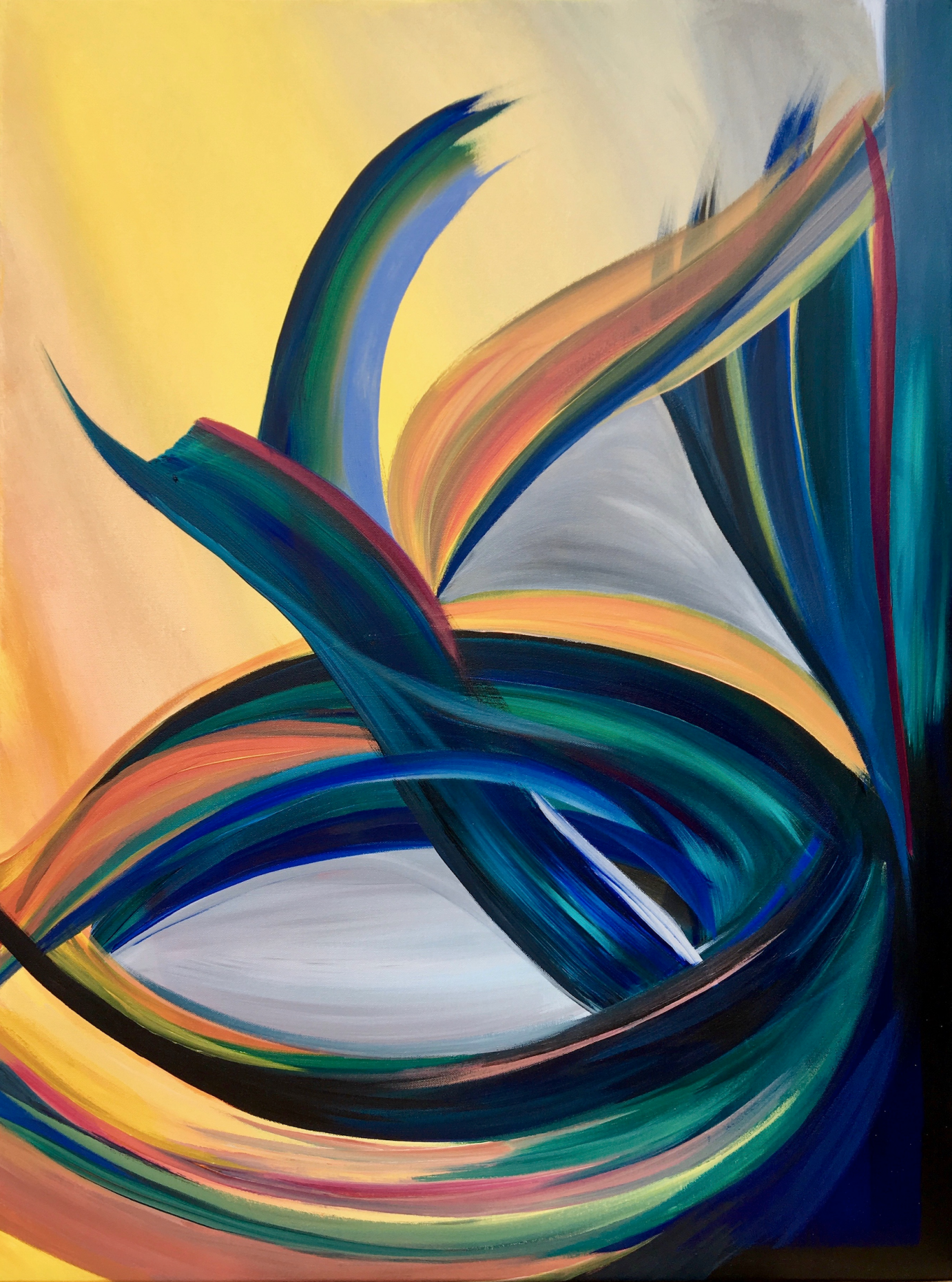 The first time I stood in front of a canvas, I realized that my arm and by extension, paintbrush, understood movement intrinsically. As I began to paint, I would check in with motion and the many subtleties inherent therein. For years, I have been a dancer, trained to think about space and proximity, design with regard to pattern and spatial awareness, color with regard to texture of movement (sharp, soft, flowing, jagged or mechanical). Suddenly, these exact same qualities began to find their way into both my portraits and abstract works. I began to understand that I was now dancing, with paint.