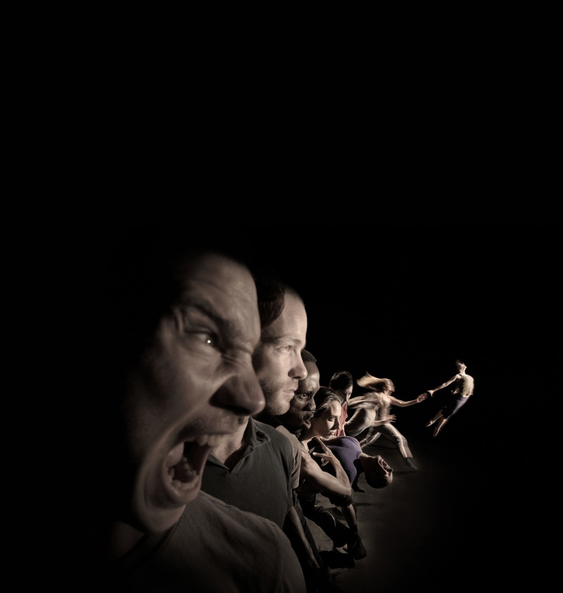 Crystal Pite: I rely on the performers to help me build the material. I try to work to their strengths. And, I try to not waste movement. I make lots of choreography that I throw away and don’t ever use, what I mean about “not wasting movement” is that with any movement, there is always something to follow, or a grip that wants to be used to its’ fullest. If something is proposed physically, I like to either see it interrupted, or to see it exploded or imploded - I like to see it flow or morph into something else. I don’t like to see movement dropped and wasted, in a sense. There is always a trajectory or an energy that is proposed in any particular movement and I like to try to follow that. I find that the movement really informs me about the act of choreographing itself. There is always information there about where to go next.