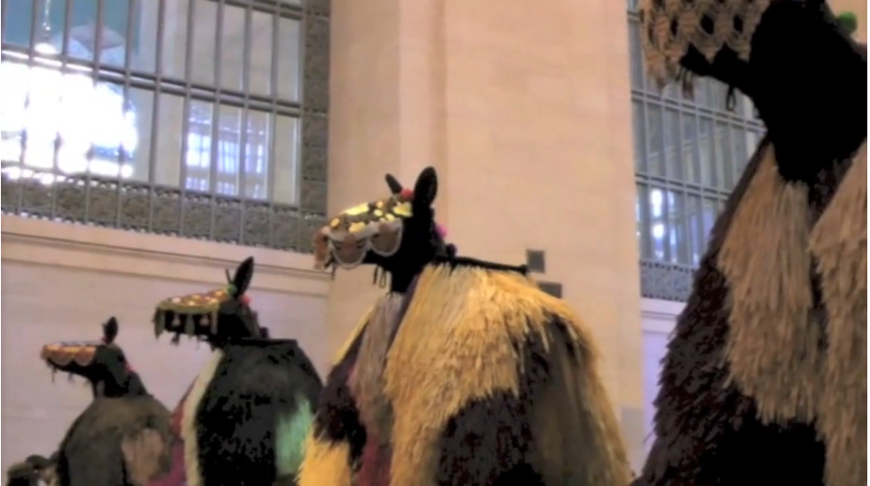Chicago-based artist Nick Cave transformed Grand Central Terminal’s Vanderbilt Hall with a herd of thirty colorful life-size horses that broke into choreographed movement—or “crossings”— twice a day, accompanied by live music. The project was presented by Creative Time and MTA Arts for Transit as part of a series of events celebrating the centennial of Grand Central.
