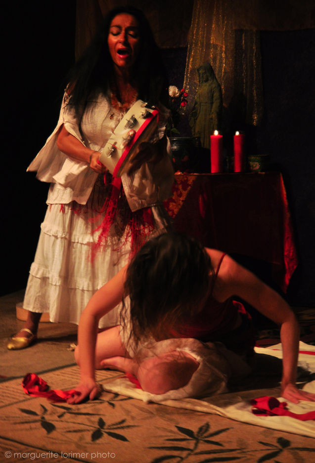 Another standout in the cast is Amara, whose fire twirling, sword-baring belly dance added a thrust of female authority and force into the production. Both the belly and Brazilian dances eclipsed the tarantata for their virtuosity, a juxtaposition that made one consider the vulnerability of the women seeking relief from their suffering. “A joyful journey of discovery, mysticism and erotic empowerment,” as described in the program and suggested, is still to come.