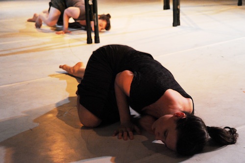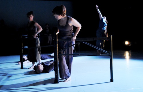 I have written previously about the problems inherent in a choreographer dancing in their own works and let me begin my one criticism by stating that, as a performer, Ms. Radway is a joy to watch.Her control of her own body is such that the most basic principles of physics, namely friction and gravity, don’t seem to deter her from skating on her back one second to flipping off a metal structure the next.She is able to make dancing on another human being into something absolutely effortless.Radway also poses a shrewd eye for choosing dancers that are more than up to the task at duplicating her every roll, turn, scoot and jump.Yet while every moment she is onstage is a feast for the eyes, it renders her own dancers into afterthoughts, something that seems contrary to the work that make such an effort to create mini-worlds filled with citizens with their own sensibilities and mores.