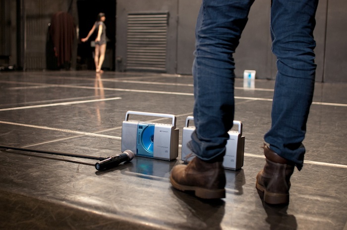 All three dancers are clearly working on some sort of value creation through movement. The clearest moment of this abstract idea was when Edmond Russo circled the wooden floor, saying he was “a yes” and “a champion”. This created a rush of energy for the audience, seated in the round. Right before he stopped running, he froze his position while the lighting changed to half-light. “You are a chicken,” he said, placing a sliver of self-doubt into the mood. I found myself