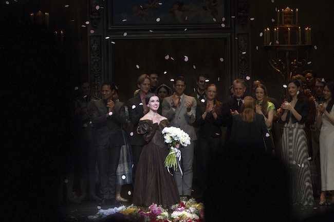 | Irina Dvorovenko takes a curtain call after her final ABT performance. Photo: Marty Sohl. |