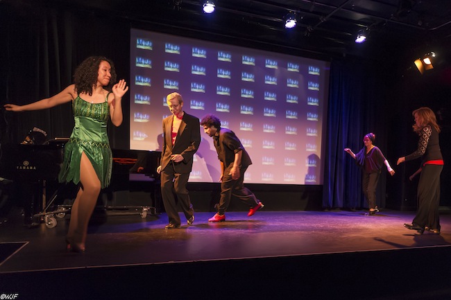 On Tuesday, April 9, The American Tap Dance Foundation (ATDF) held its annual gala at the Leonard Nimoy Thalia Theater at Symphony Space to raise money for the Gregory Hines Youth Scholarship Fund. The evening began with a cocktail reception and silent auction, followed by a special tap dance version of From the Horse’s Mouth, a famous celebratory dance series created by Tina Croll and Jamie Cunningham fourteen years ago. In this production, artists share stories of their experiences in the dance world while performing and improvising together. Since its founding, From the Horse’s Mouth has been produced across the US and Canada, and has been performed by over 1,000 dancers of all ages dancing in a wide variety of styles. Tonight it was all syncopated stories.