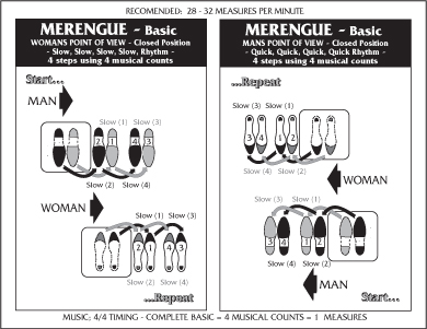 The name Merengue, as you’ve probably guessed, stems from meringue. This could be because the dance resembles an eggbeater whipping up the frothy pie topping of sugar and egg whites or, perhaps, from the dance’s light, cheerful tone. Regardless of the explanation, the Merengue continues to grow in popularity due to its uncomplicated rhythms and jubilant nature. Newcomers struggle in the beginning, often bumping knees with their partners. Once the basics are down, everyone regardless of age or shape can enjoy the Merengue.