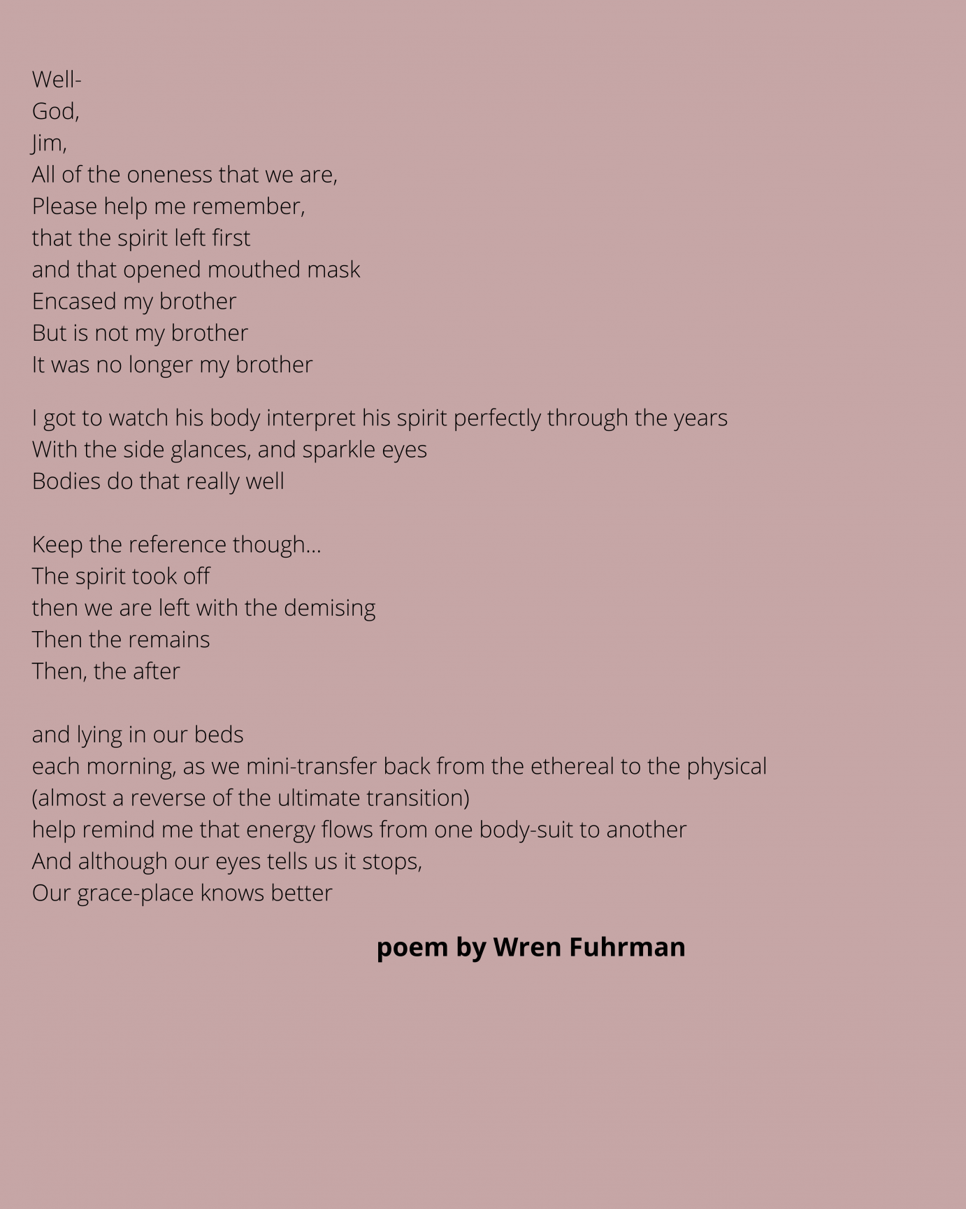 I just finished this project. It is to honor my brother Jim, who passed last year from cancer. The name of the piece is "passed."